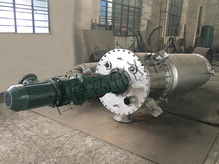 它由一個或多個帶夾套加熱的圓筒體及筒內(nèi)旋轉(zhuǎn)的刮膜器組成。刮膜器將進(jìn)料連續(xù)地在加熱面刮成厚薄均勻的液膜并向下移動;在此過程中,低沸點(diǎn)的組份被蒸發(fā),而殘留物從蒸發(fā)器底部排出。為提高汽液分離的效果,并兼有除沫、防夾帶的作用,刮板式薄膜蒸發(fā)器采用了三級分離,捕集方式:一是汽液切線進(jìn)入蒸發(fā)罐利用離心力和罐內(nèi)沉降作用;二是蒸發(fā)器頂部采用高效氣濾式過濾網(wǎng)層;三是增設(shè)撞擊式捕液器,從而防止了料液被二次蒸汽夾帶的損失,即使對易產(chǎn)生泡沫的料液(例如含皂的中藥液)也能達(dá)到滿意的分離效果。